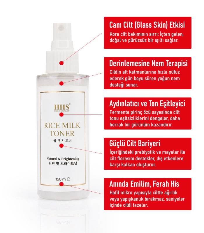 Cildinize kusursuz bir ışıltı ve derinlemesine nem kazandıran profesyonel bir dokunuş. Doğal fermantasyon süreciyle elde edilen gerçek pirinç mayası ve güçlü aktif bileşenlerle formüle edilen HHS Rice Milk Toner, cildin doğal mikrobiyomunu destekleyerek “cam cilt” (glass skin) berraklığı sunar. Sentetik his bırakmayan, anında emilen mikro-sprey yapısıyla cildinizin gün boyu neme doymuş, aydınlık ve esnek kalmasını sağlar.